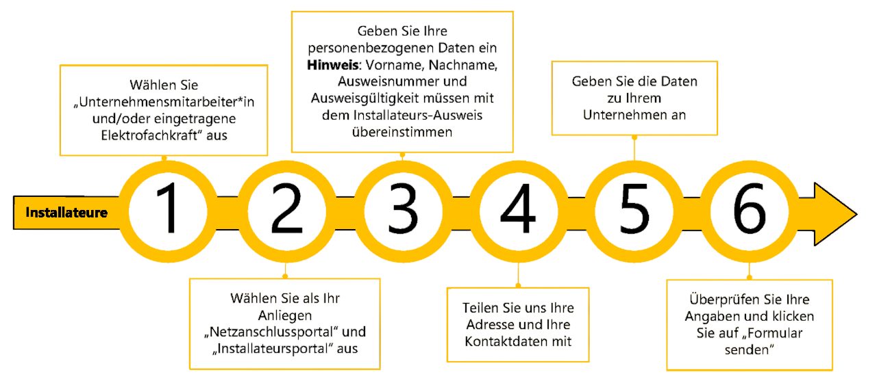 Ab 03. November 2025 sind Anträge ausschließlich über das Netzanschlussportal möglich. Unter dem Button "weitere Funktionen benötigt" können sich Installateure jetzt registrieren und folgende Zusatzfunktionen online nutzen:
